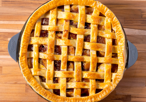 Hornee en horno precalentado durante 15 minutos. Reduzca el fuego a 350 ° F y hornee hasta que la corteza esté dorada, el caramelo en la corteza superior esté firme y el relleno de manzana burbujee, de 35 a 40 minutos más. Deje enfriar completamente antes de cortar.